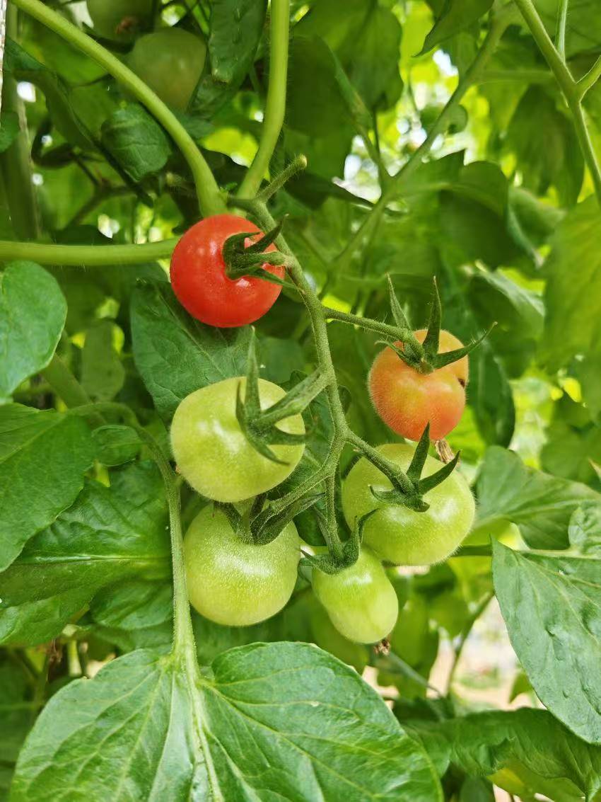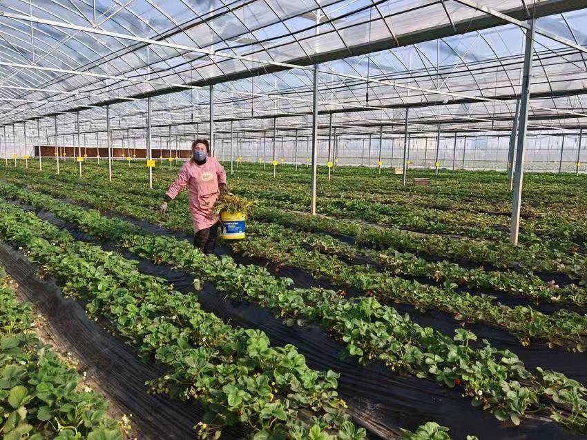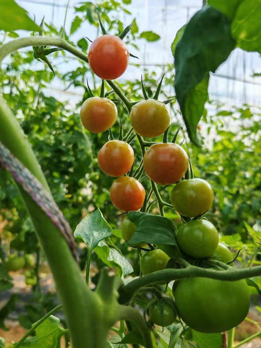 番茄采摘园和草莓大棚内,游客们提着果篮穿梭其中,亲手采摘新鲜果实,欢声笑语洒满田园。
