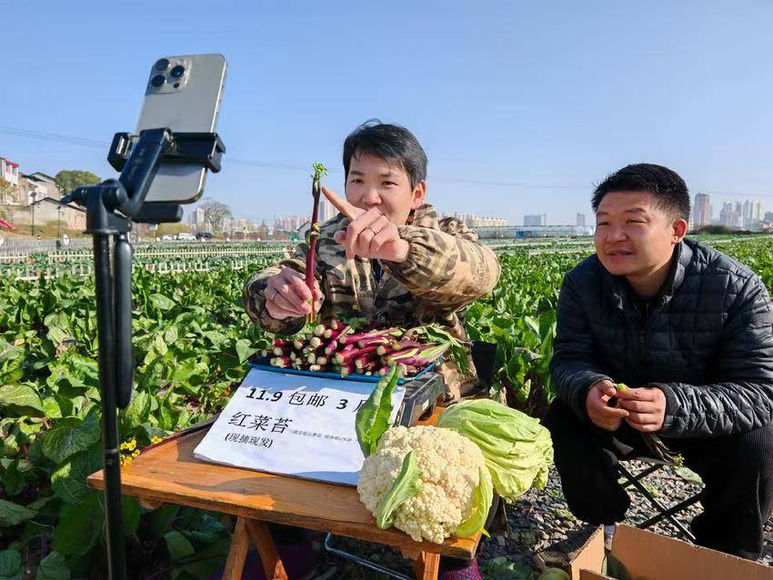 田间地头,新农人架起直播设备,对着镜头热情推介红菜薹、花椰菜等时令果蔬,直播间里订单不断;