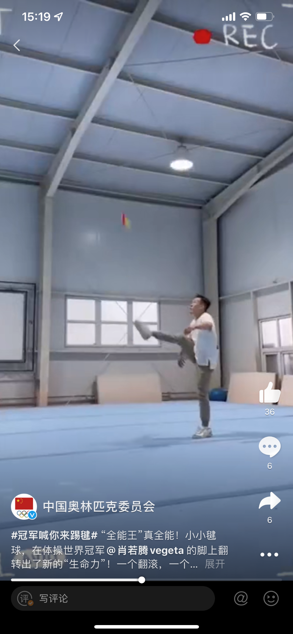 游泳奥运冠军汪顺手脚并用踢出“混合毽”