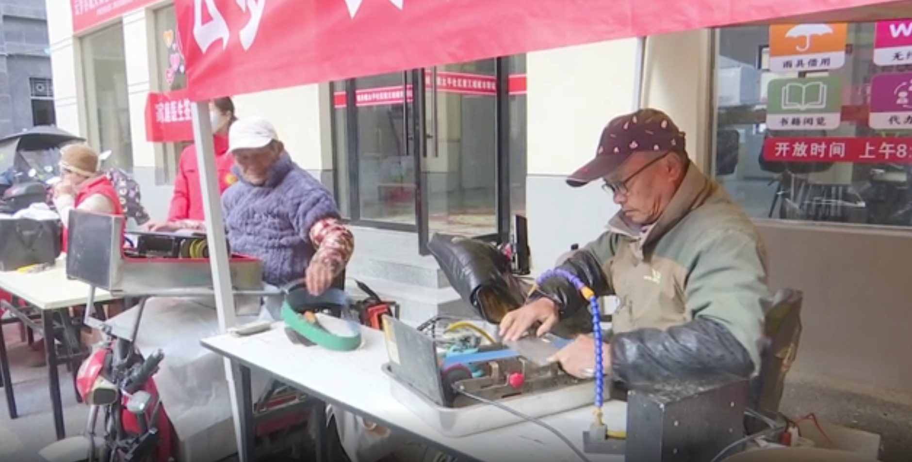 文明实践流动服务站前热闹非凡,县新时代文明实践中心的工作人员精心布置了多个服务区域。在健康咨询区,医护人员耐心地为居民们解答各类健康问题,提供专业的医疗建议,还免费为大家测量血压、血糖等;志愿者们为居民们发放健康宣传手册,详细讲解日常保健知识;现场还设置了便民服务点,为居民们提供磨剪刀、理发等实用的生活服务。