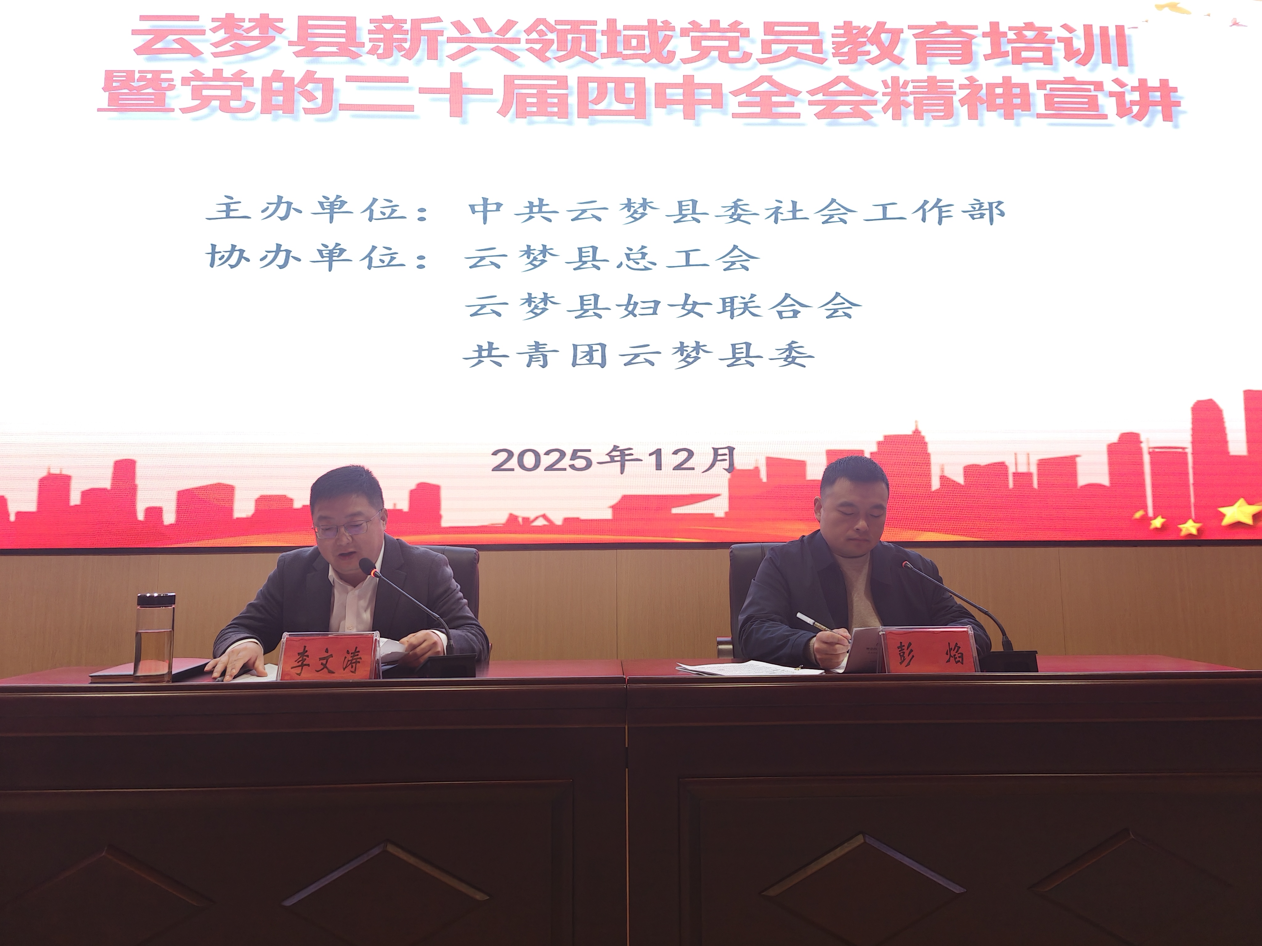 12月17日,由县委社会工作部主办的全县新兴领域党员教育培训暨党的二十届四中全会精神宣讲会举行。