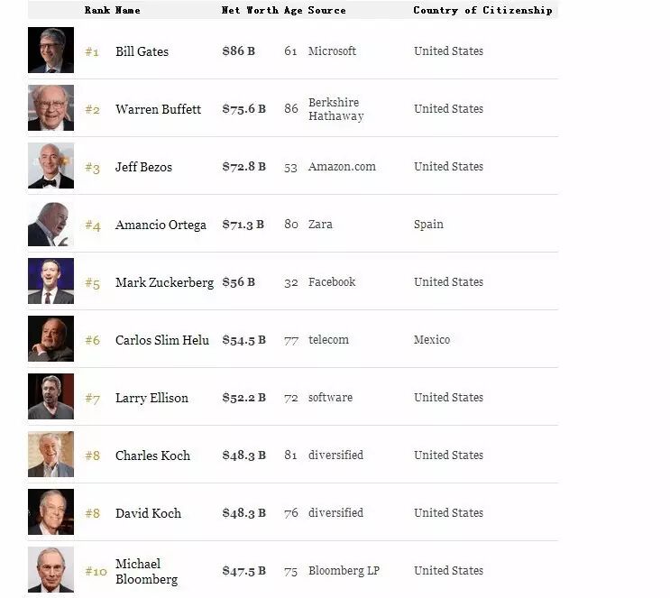 美国《福布斯》发布的2017年度全球富豪榜显示,最近一年新上榜的中国亿万富翁人数超过美国,成为全球第一。美国微软公司创始人比尔·盖茨以860亿美元资产第四年蝉联榜首,万达集团主席王健林以313亿美元位居18位,成华人首富。