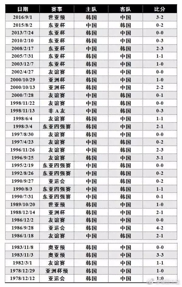 1978以来,此前34次交锋国足2胜13平19负,胜率仅为5.9%,历史战绩让恐韩症的概念反复被提起,堪称不能忘却的历史。