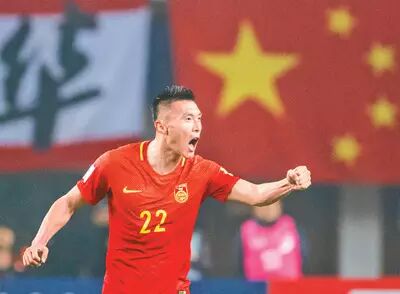 中国队球员于大宝庆祝进球。记者 史家民摄