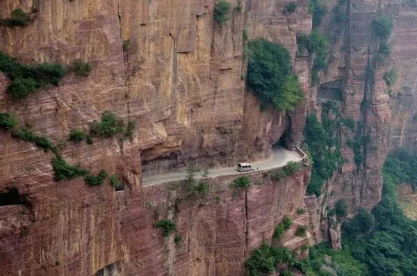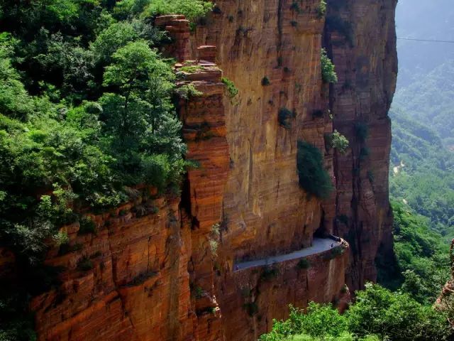巍巍太行山绝壁多,于是就在悬崖峭壁上开凿出堪称世界上最奇险的挂壁公路来,非常有特色。