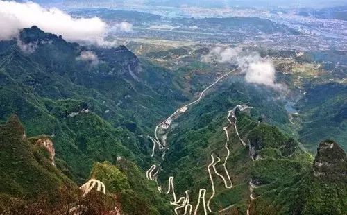 天门山是张家界海拔最高的山,被称为通天大道的盘山公路共有99弯,就像玉带环绕,弯弯紧连,是“天下第一公路奇观”。