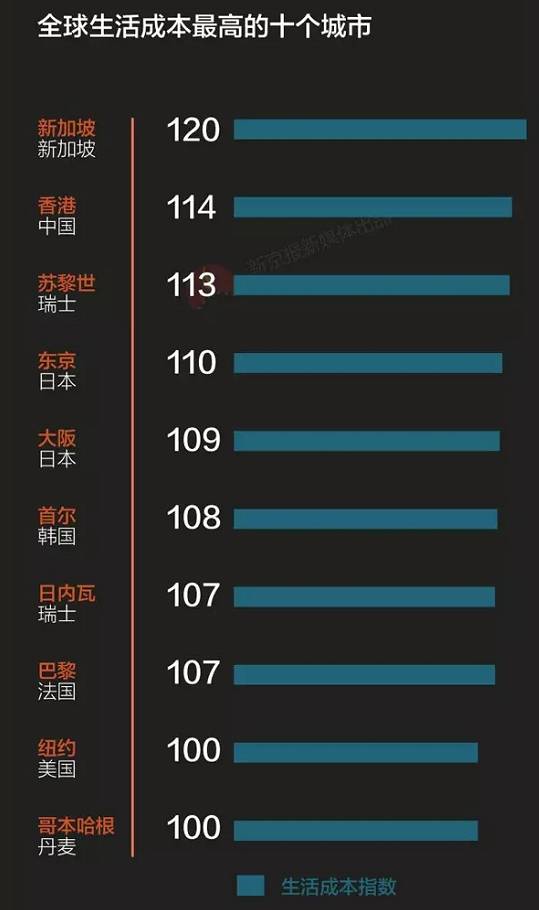 《全球城市生活成本》是经济学人每半年开展一次的调查项目,对全球133座城市的150多项价格指标展开对比,包括房租、食品、化妆品、服装、家政服务、交通和公用事业费用等项目,该调查旨在帮助用户计算制定外籍员工生活成本津补贴和薪酬组合、确定商务旅行费用标准,因此,房价并不包括在内。