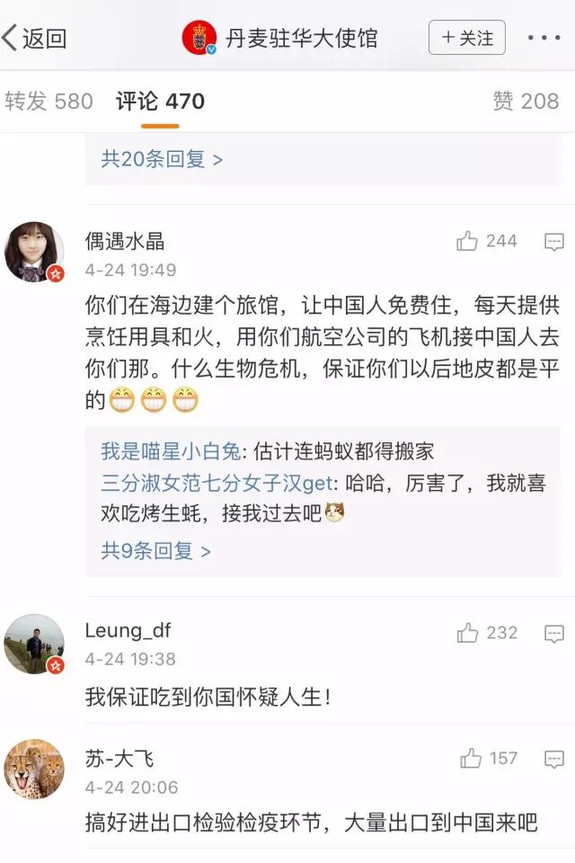 24日,丹麦大使馆的一条微博引起了网友们的强烈“围观”。