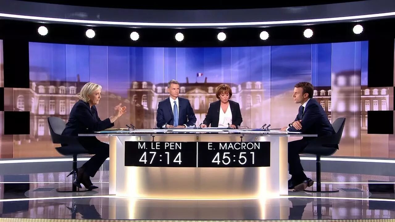 当地时间3日,进入法国总统选举第二轮投票的两名候选人马克龙和勒庞展开选前最后一次电视辩论。法国民调机构最新调查显示,马克龙将以60%的得票率击败勒庞,赢得总统选举第二轮投票。(详情见:演讲被指抄袭,她的解释听起来却像是说“雷同卷不算抄”……)