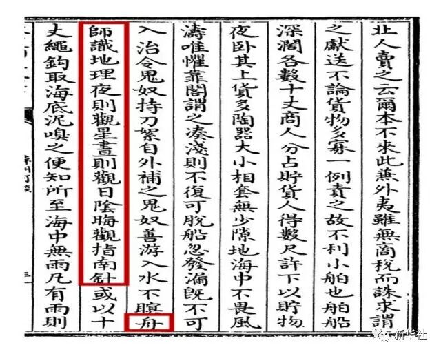 北宋地理学家朱彧在海上交通贸易的笔记体著作《萍洲可谈》中写道:“舟师识地理,夜则观星,昼则观日,阴晦观指南针。”