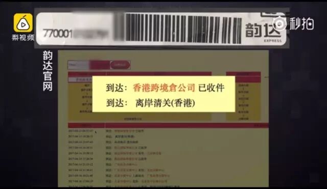 韵达某快递单号在官网也显示为国际件:“到达香港跨境仓公司 已收件,在香港离岸清关......”