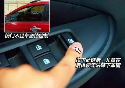 孩子好奇的天性会驱使他们爱拨弄车窗升降键和车门开关,所以在有儿童乘车时,大家最好将车门侧面的儿童锁打开,并锁定自动车窗,以免发生危险。