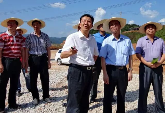 廖俊波(前中)在政和县同心工业园区调研(2013年5月23日摄)。