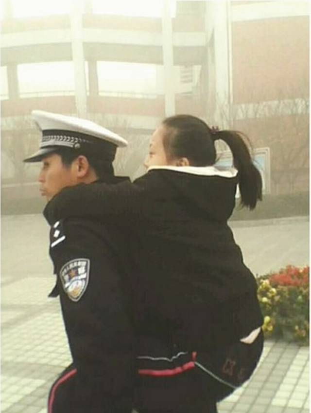 背上这个小姑娘,和他素不相识,只是他片区小学的一名学生。