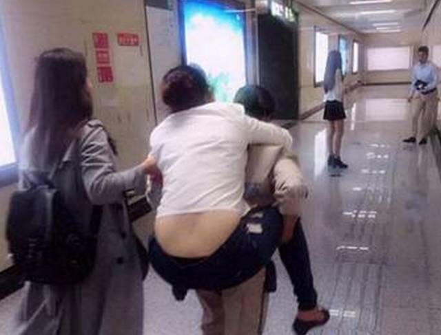 小姑娘脚打了石膏,走路不方便。他当场背起就往学校走。“你就当是爸爸背你,抱紧脖子,别掉下来。”