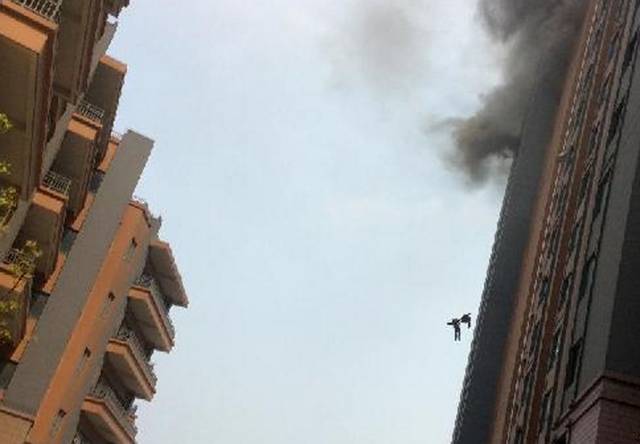 4名在周围工地干活的高楼清洁工看到浓烟后,第一时间赶到现场。电梯起火关闭,无法展开营救。这四个人背着80多斤重的绳子,接力爬到28楼。之后放绳砸窗,救下数人。
