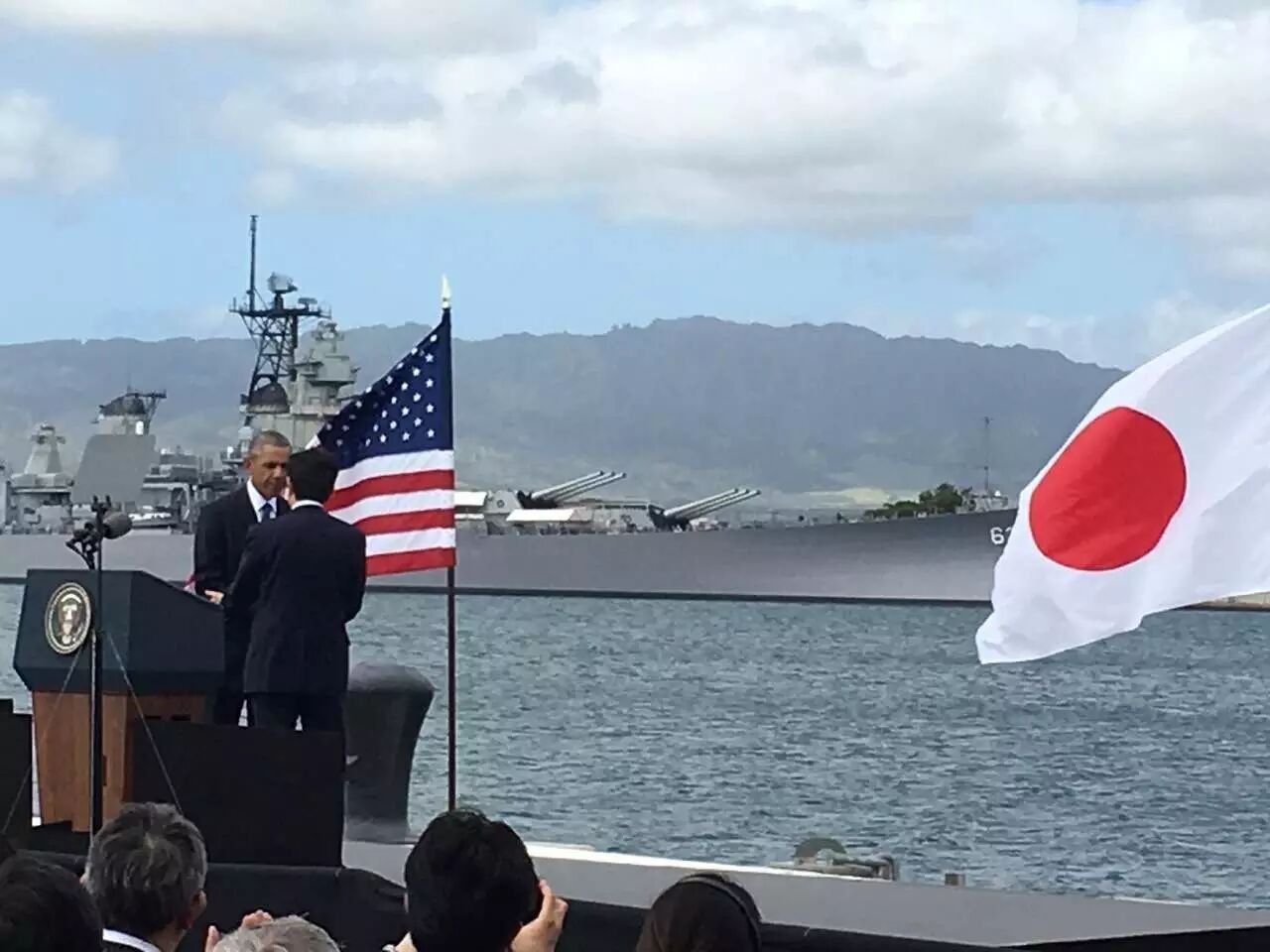 当地时间12月27日,奥巴马和安倍共同参观了珍珠港亚利桑那号纪念馆,并一同向死者献花。在随后讲话中,安倍对珍珠港事件中阵亡的美军战士和其他二战遇难者表示“衷心和永久的哀悼”,但仍然没有道歉。安倍称美日同盟将走向新高度。