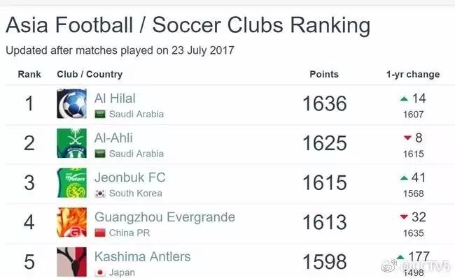 最新发布的世界足球俱乐部排行榜显示,广州恒大以1613分排名亚洲第4位,较上期下降1位,在世界范围内排名第92位,这是广州恒大近两年的最低世界排名。
