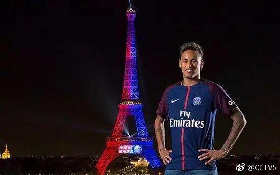 巴西球星内马尔正式加盟巴黎圣日耳曼俱乐部,法国当地时间6日晚21:30至次日凌晨1:00,埃菲尔铁塔呈现出红蓝双色,塔身出现了“欢迎内马尔,这里是巴黎”的字样。