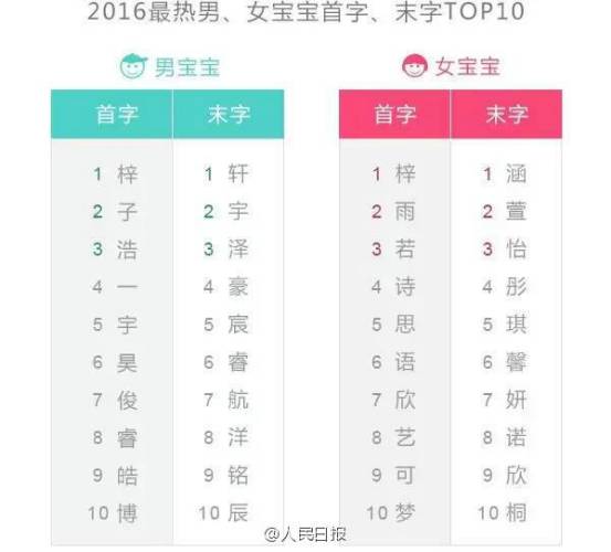 日前,中国首份姓名大数据报告《2016大数据“看”中国父母最爱给宝宝起什么名》出炉。