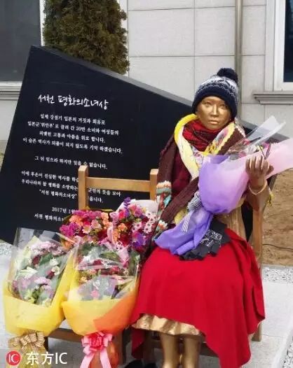 17日,由韩国市民团体制作的慰安妇“和平少女像”在位于韩国忠清南道舒川郡的春之村广场揭幕。之前,这一问题已经在日韩之间引发外交风波。