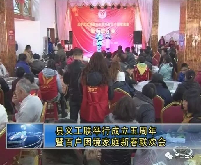 1月17日,县义工联举行成立五周年暨百户困境家庭新春联欢会,将节日的祝福与问候送到300户困难家庭。
