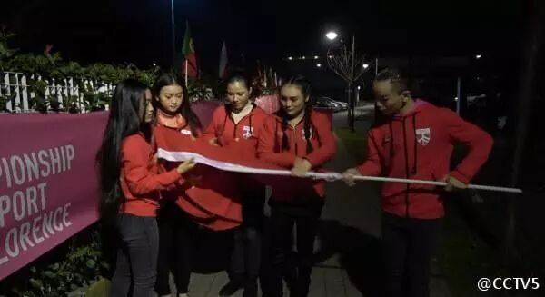 旁边的泰国女排姑娘们也停止了训练,站在原地。