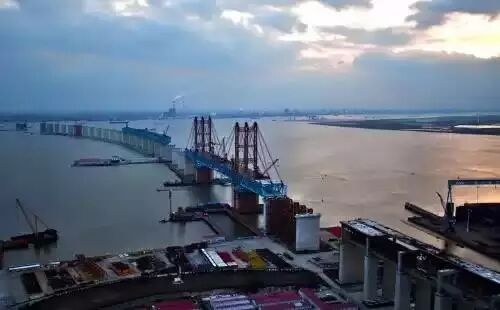 昨日,世界跨度最大(主跨1092米)的公铁两用钢拱桥——沪通长江大桥天生港航道桥顺利合龙。沪通长江大桥是我国沿海铁路大通道——沪通铁路的控制性工程,将在2019年底建成。(详情见:这座桥又创世界第一 今天合龙)