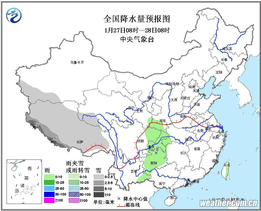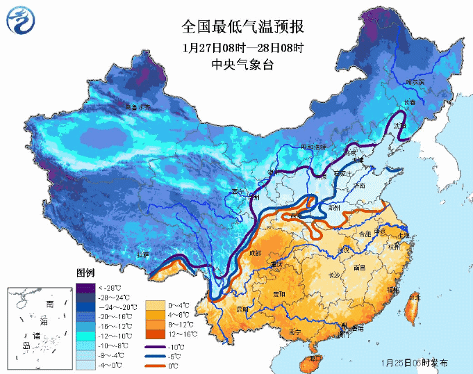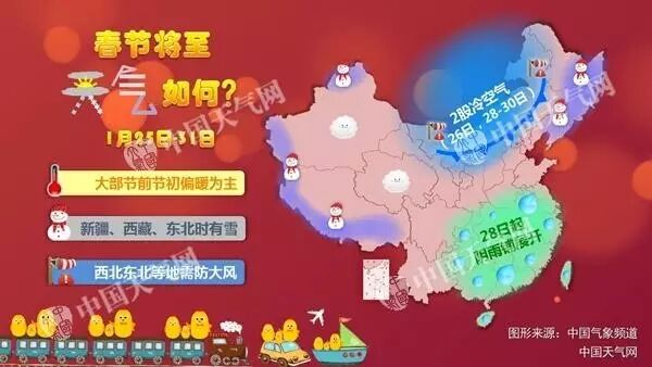 另据中央气象台的中期预报,28-29日,新一股冷空气影响我国,长江中下游及其以北地区有4~6级偏北风,气温下降4~8℃;北方部分地区及江淮、江南及西南地区东部等地有一次降水过程,雨雪分界线位于江淮至江汉北部一带,东北地区东部、黄淮西部局地有大雪;江南及西南地区东部有小雨。雨雪天气正值大年初一、初二,可能会影响大家走亲访友。由于预报时效较远,应关注临近预报。