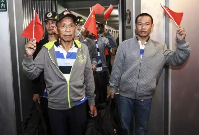 △10月25日,遭索马里海盗劫持的阿曼籍台湾渔船“NAHAM3”上的9名中国船员抵达广州。