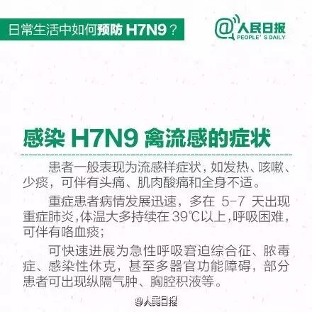 H7N9症状 人感染H7N9流感病例一般表现为流感样症状,如发热、咳嗽、少痰,可伴有头痛、肌肉酸痛和全身不适。