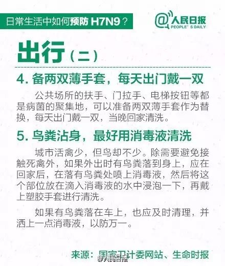 专家:避免接触活禽是预防关键 H7N9流感感染来源非常明确,就是活禽及其分泌物、排泄物或被这些污染的农贸市场活禽交易区。因此,大家应尽可能远离农贸市场活禽交易区,避免跟活禽及分泌物接触,同时要做到勤洗手等。