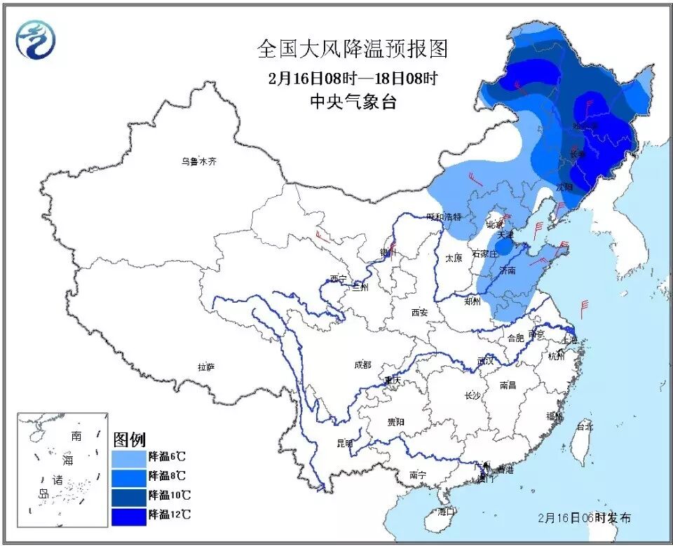 中央气象台消息,预计未来2天,冷空气将席卷中国长江以北地区,带来大风降温天气,内蒙古中东部、东北地区、华北北部和东部、黄淮中东部等地气温将下降6-10℃,其中,内蒙古东北部、东北地区中东部等地局地降温幅度可达12℃以上。