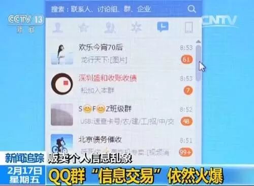 央视近日对“QQ群贩卖个人信息”进行了连续报道,相关涉案人员已被警方锁定。腾讯昨日回应:相关QQ群已被永久封停,并针对涉嫌信息贩卖的QQ群扩展排查。