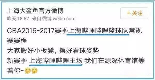 曾将大鲨鱼更改为“上海哔哩哔哩篮球队”,