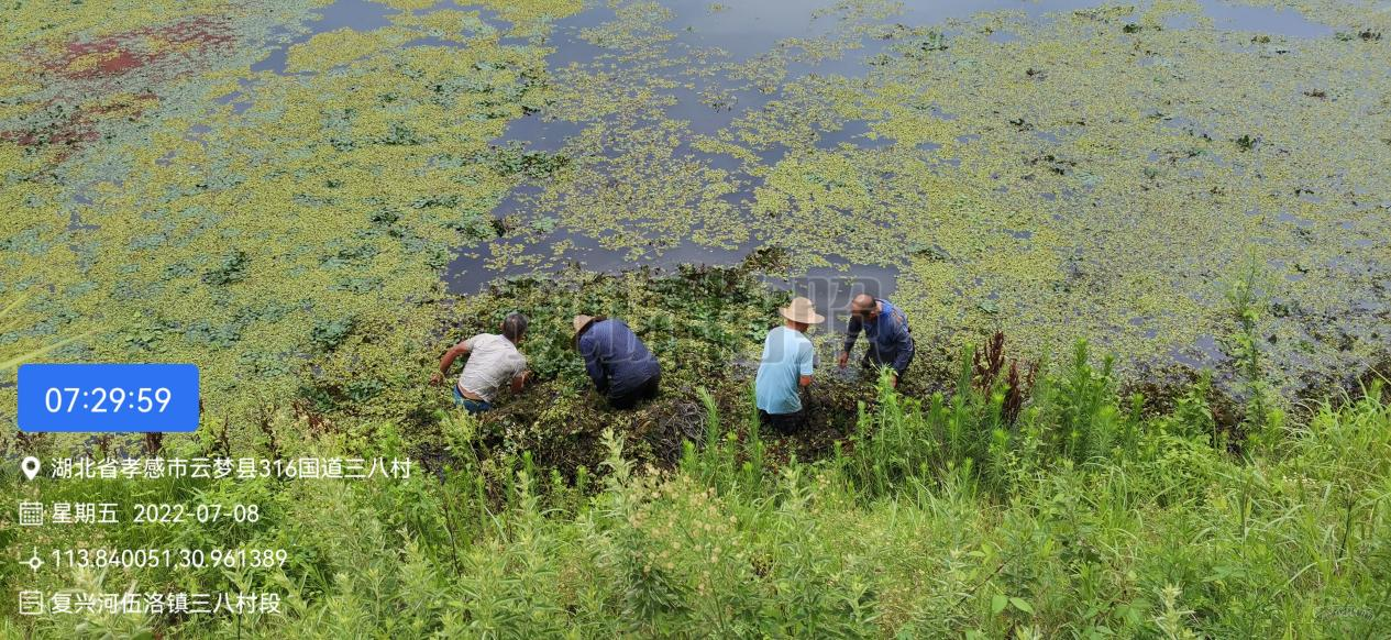 镇实践活动工作专班及时联系农办和沿线村,针对群众反映的浮萍疯长问题开展了集中整治。近10天内,组织发动群众用镰刀、绳索、铁丝网、钉耙等对浮萍进行打捞,用工80余人次,清理浮萍5000余平方,拆除迷魂阵2处,保证行洪通畅。后期将安排专人对河道开展巡查,如果出现白色垃圾、浮萍等,就组织人员进行清理,确保河道干净、美观、通畅。